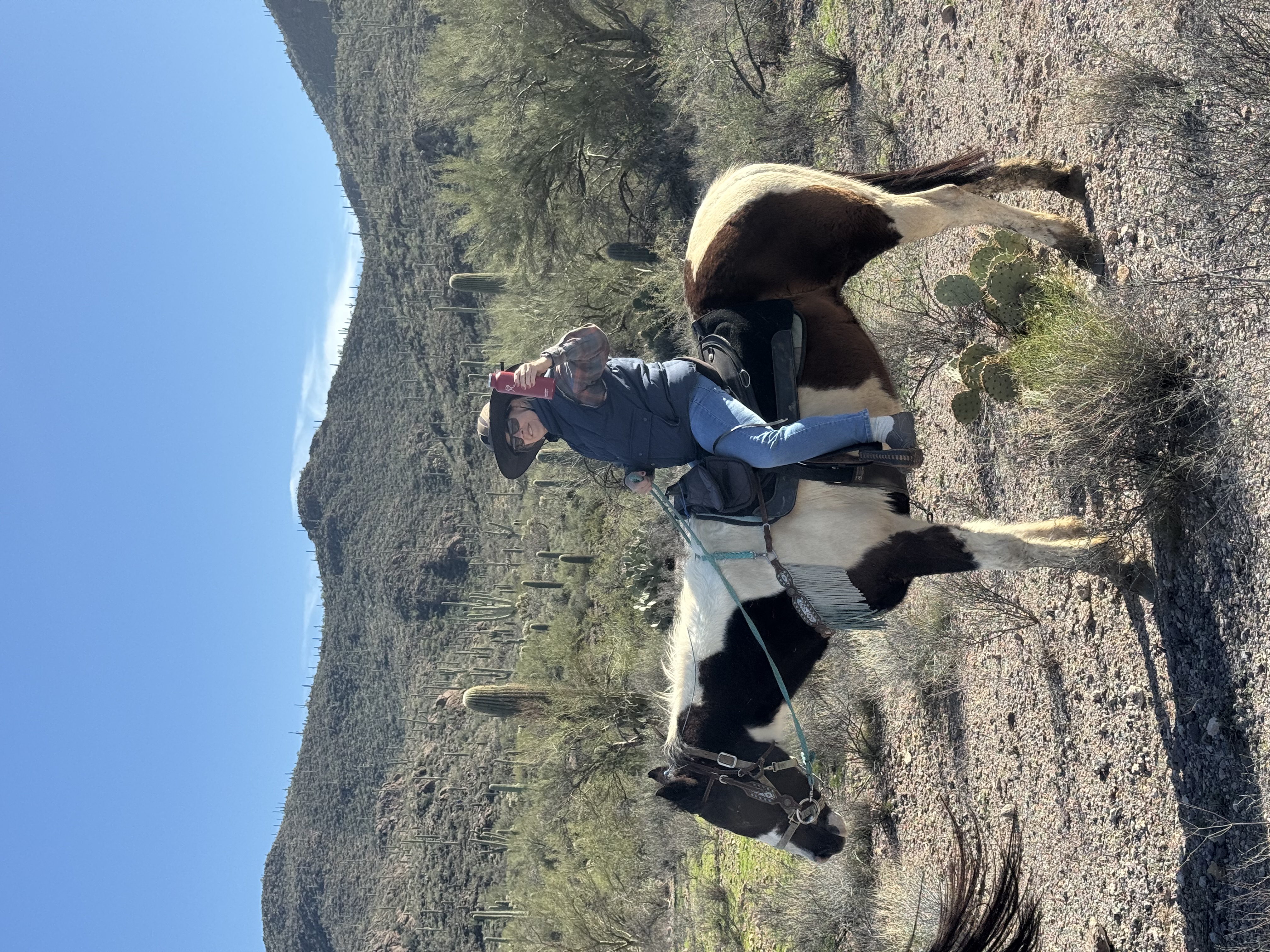 DOMINO is a well trained registered American Paint horse. She is one of the bigger mounts, at 15.3 hands. Domino is a trustworthy beginner husband horse.